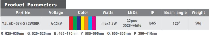 • 发光颜色(色温): 软白,,,,,正白,,,,,冷白,,,,,红,,,,,绿,,,,,蓝,,,,,黄