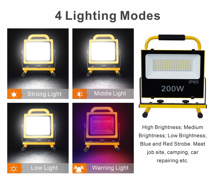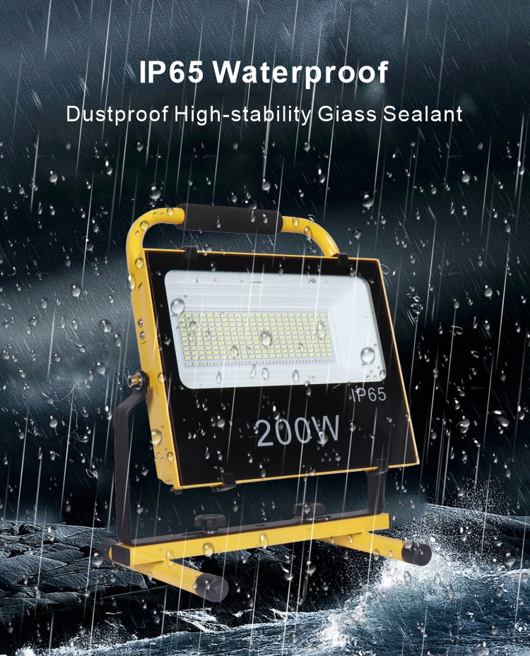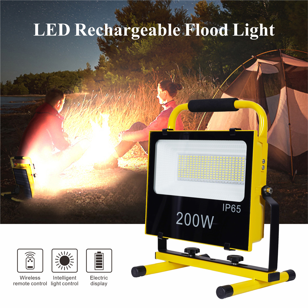 便携式手提充电灯LED投光灯200W带支架,,,,适用于户外露营车库车间修建工地垂纶作业现场照明