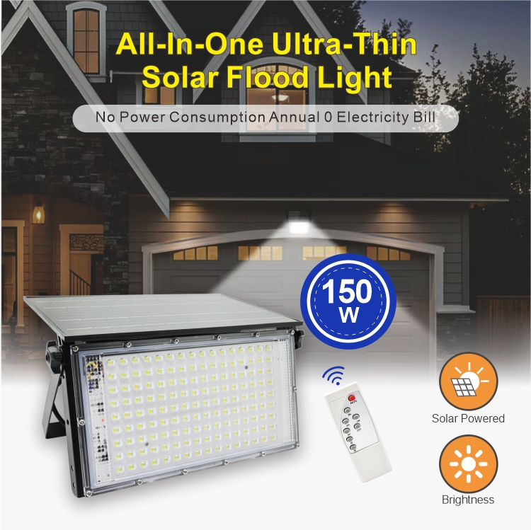 超薄户外太阳能 150W LED泛光灯太阳能庭院灯
